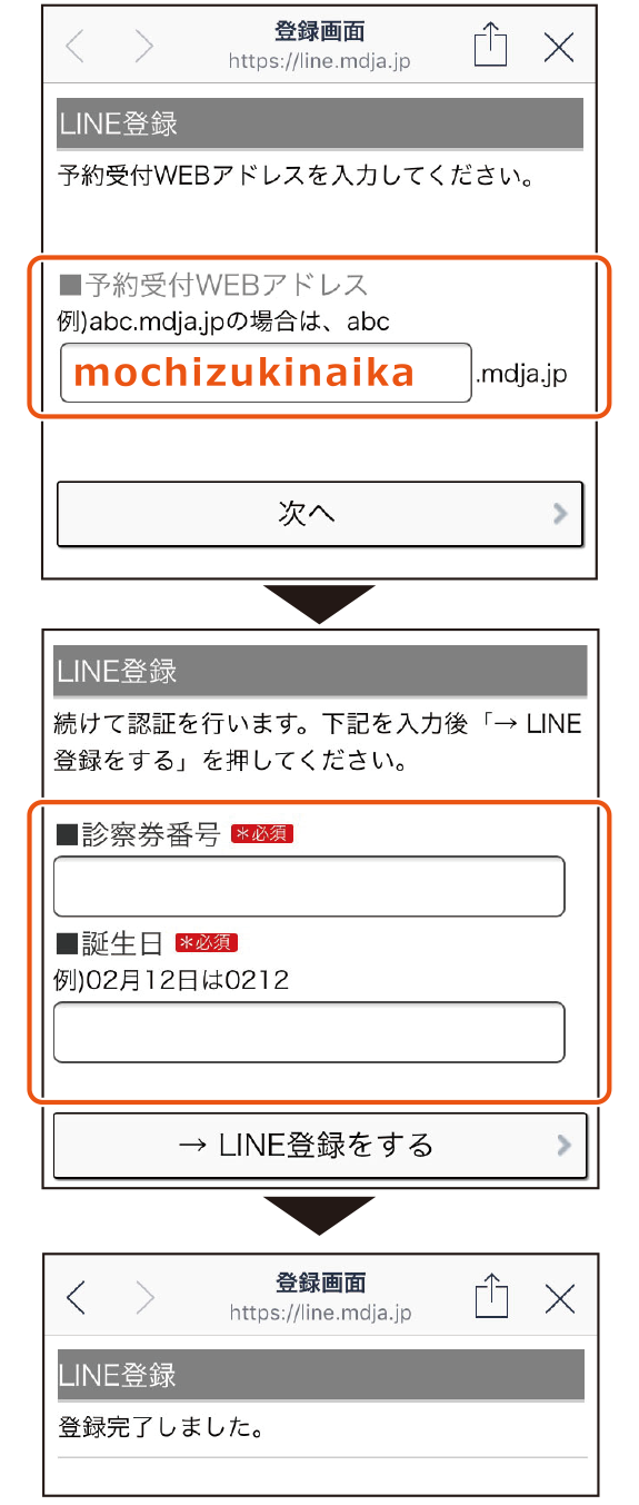 (※)TOP画面から事前に「メールアドレス・LINEを登録・変更する」を済ませておくと便利です。